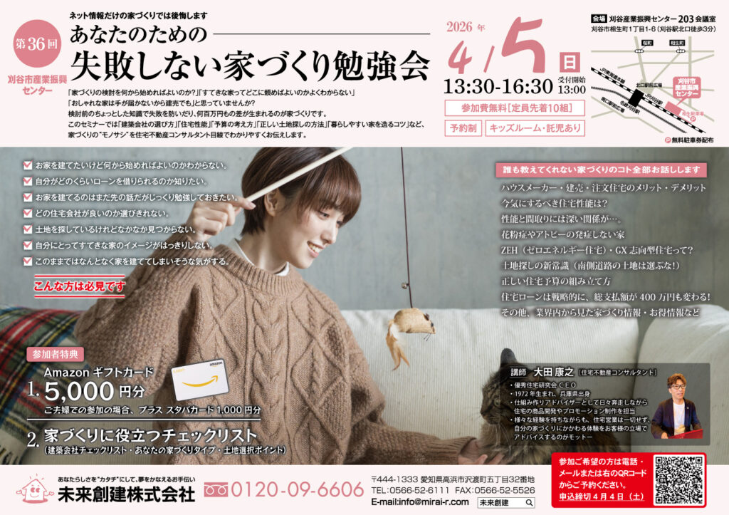 【2026年4月5日】失敗しないための家づくり勉強会(参加無料)ー刈谷市産業振興センター